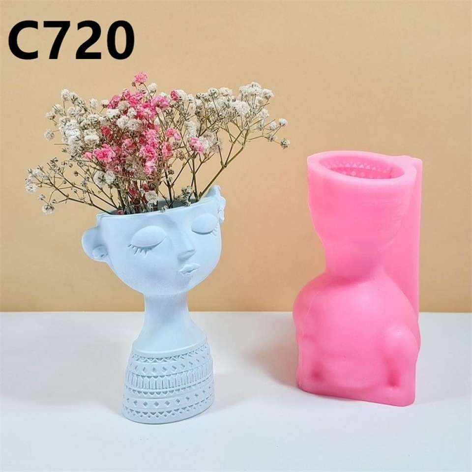 Closed Eyes Girl Vase Flower Arrangement Dried Flower Atmosphere Home Interior Decoration Gypsum Silicone Mold
