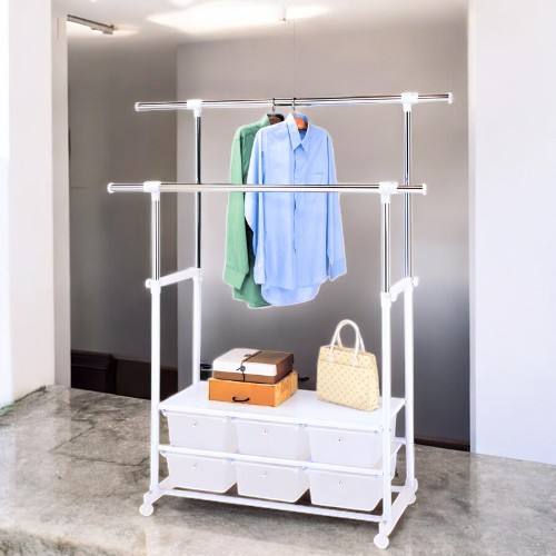 Product Name:double pole extendable multi-storage indoor rooling clothing rack