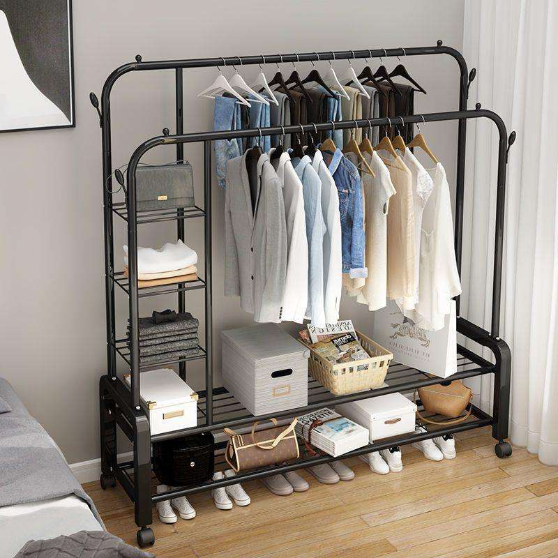 Clothes Rack With Shoe Shelf And Storage Box For Home Use Standing Type Rectangle Shape