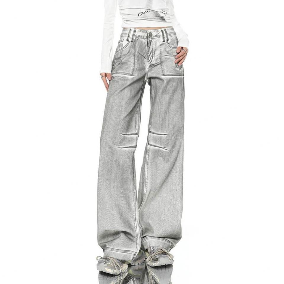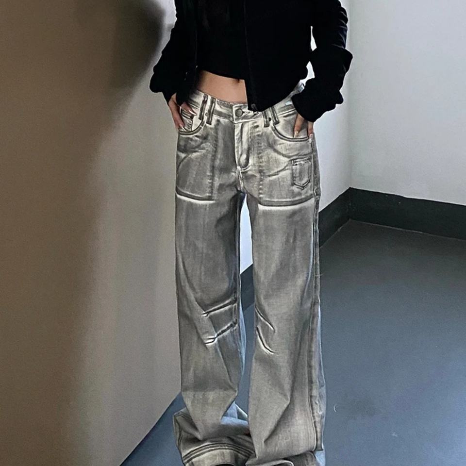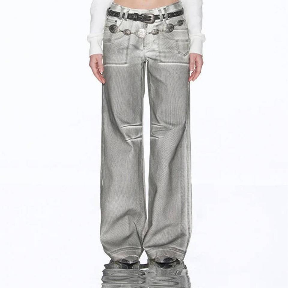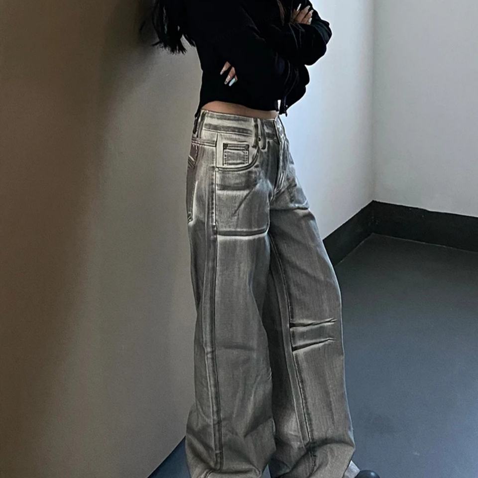 Clothing Brand Designer 2024 Women's Vintage Washed Cyberpunk Trousers High Quality Silver Y2K Loose Pants Wide Leg Denim Jeans