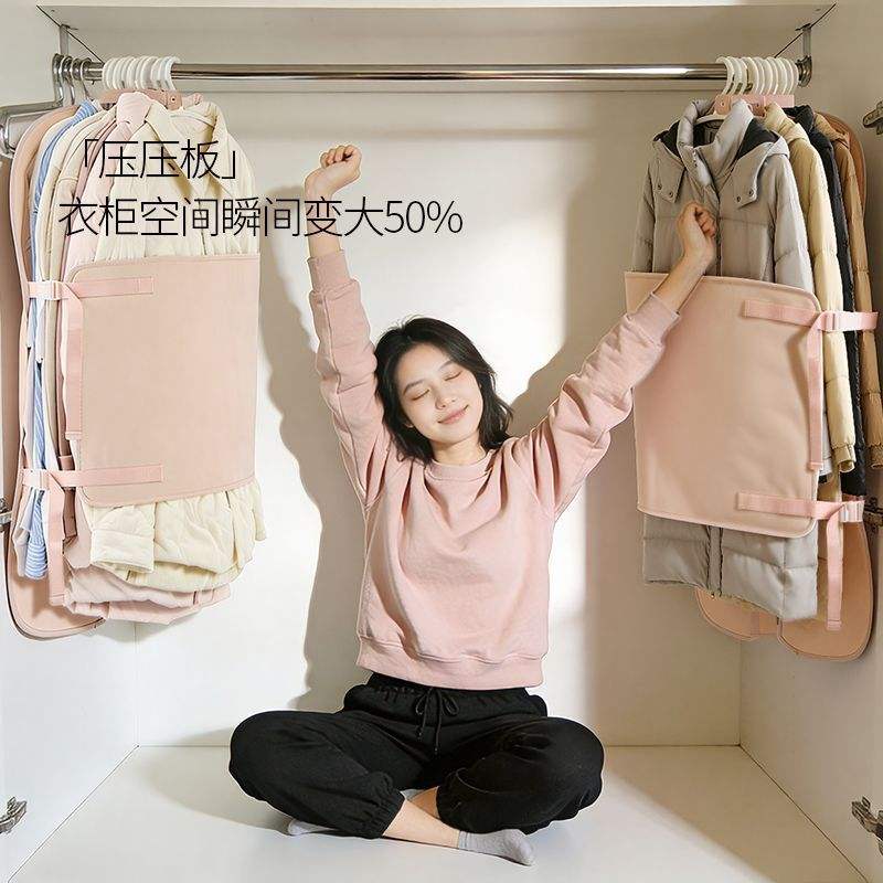 Clothing Compression Storage Board Rectangle Hook Type Milk Apricot Pink Wardrobe Organizer Space Saving Dust Cover
