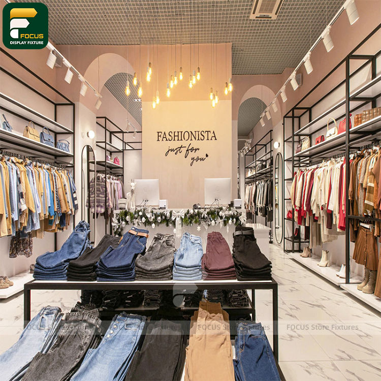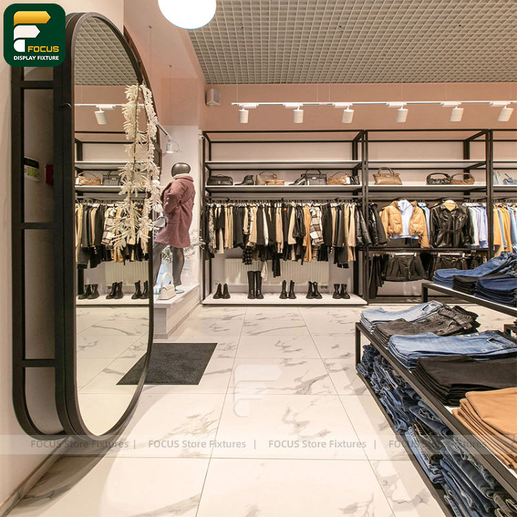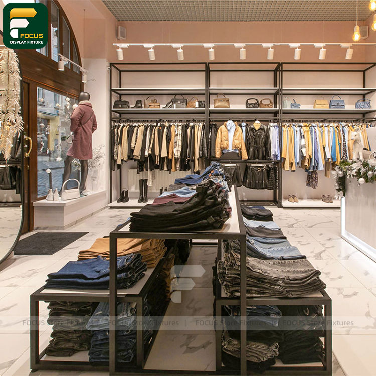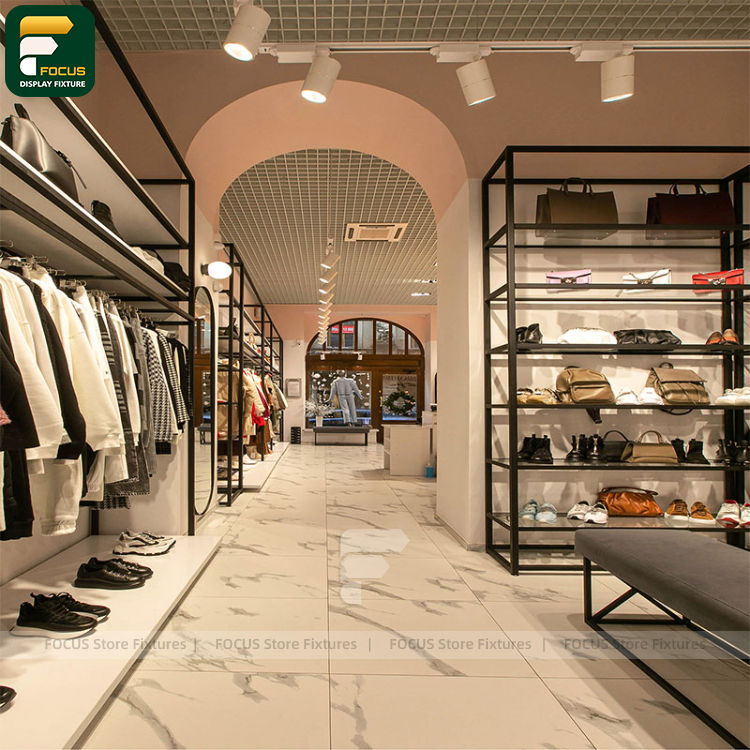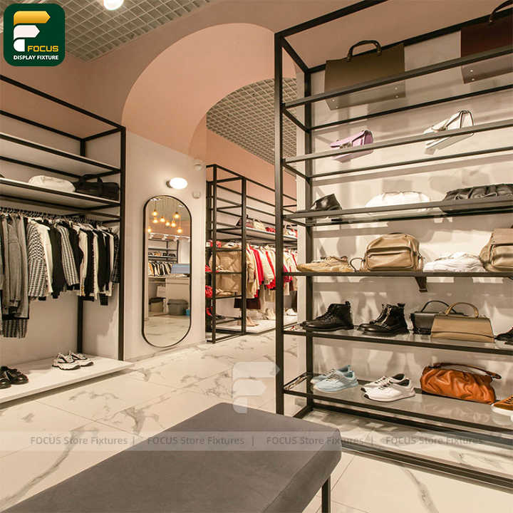 Clothing Display Rack With Wood And Metal Frame Garment Stand Retail Apparel Fixture