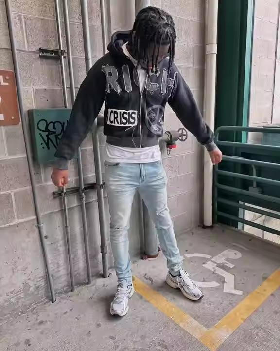 Technics:Printed, Washed, Stonewashed, acid wash, Applique, Distressed Embroidery