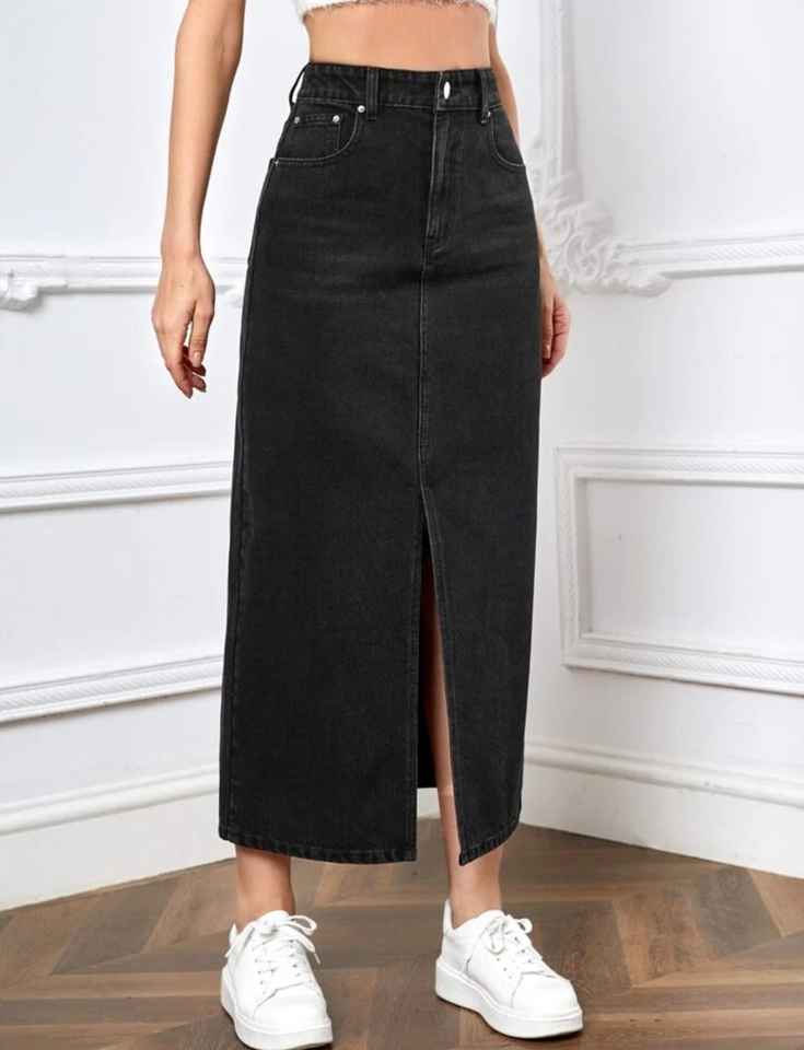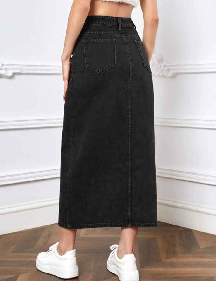 Clothing Manufacturer Wholesale Women Girls Denim Cotton Hot Sale Fashion Slit Denim Skirt Customized Midi Jeans Elastic Waist