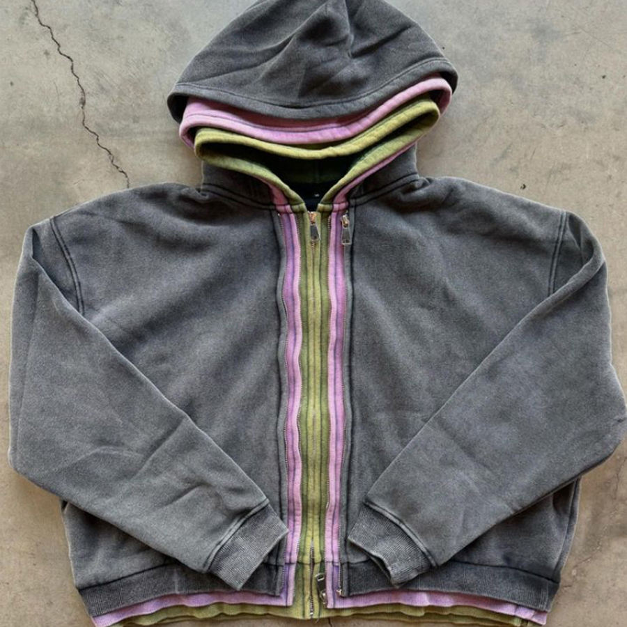 Clothing Manufacturers Custom Heavyweight Acid Wash Zip up Street Hoodies High Quality Triple Zip Layer Hoodie