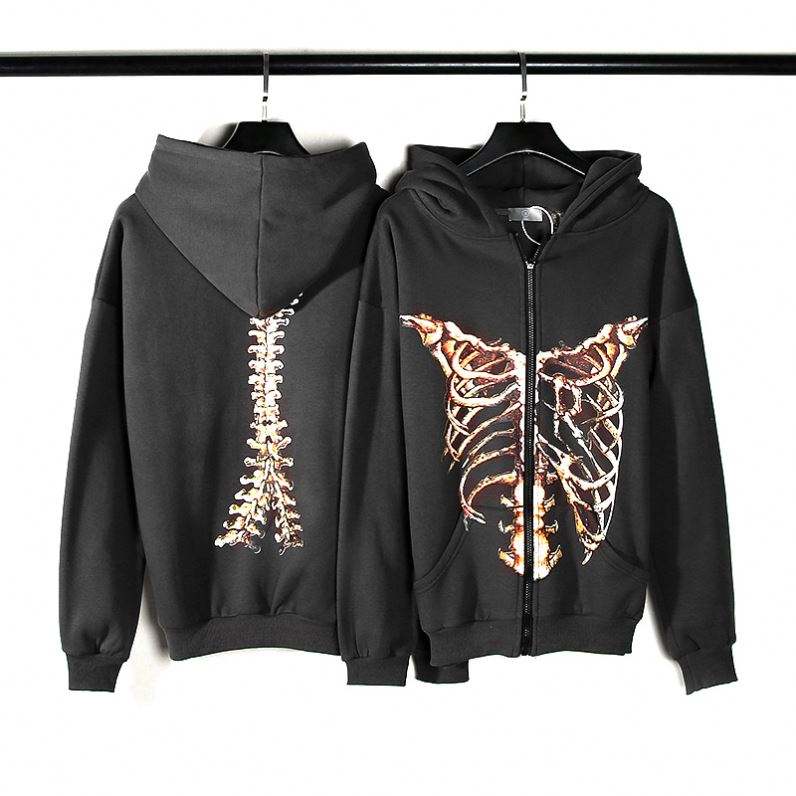 Clothing Manufacturers Custom High Quality Streetwear Custom Zip up Hoodies Washed Skeleton Pattern Oversized Zip up Hoodies