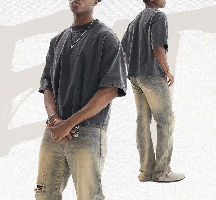 Clothing Manufacturers Custom Men's Boxy T-shirts 100% Cotton Oversize Distressed Cropped Men Gym Oversized T-shirt for men