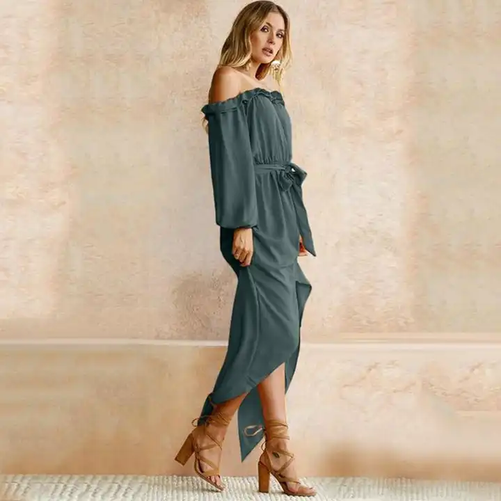 Product Name:2020 Chiffon Off Shoulder Long Sleeveless Lace Max