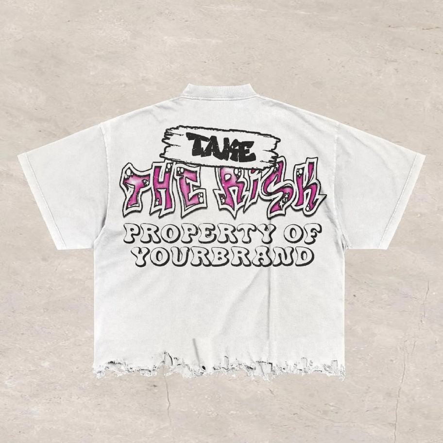 Clothing Manufacturers' Men's T-Shirts Distressed Boxy Design with Rhinestones and O-Neck Stripes DTG Printing Blank T-Shirts