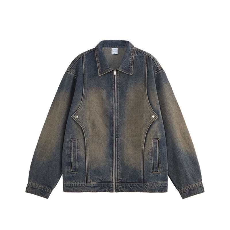 Clothing Manufacturers Washed Distressed Zip Patchwork Denim Fabrics Custom Denim Jacket Men Men's Jackets