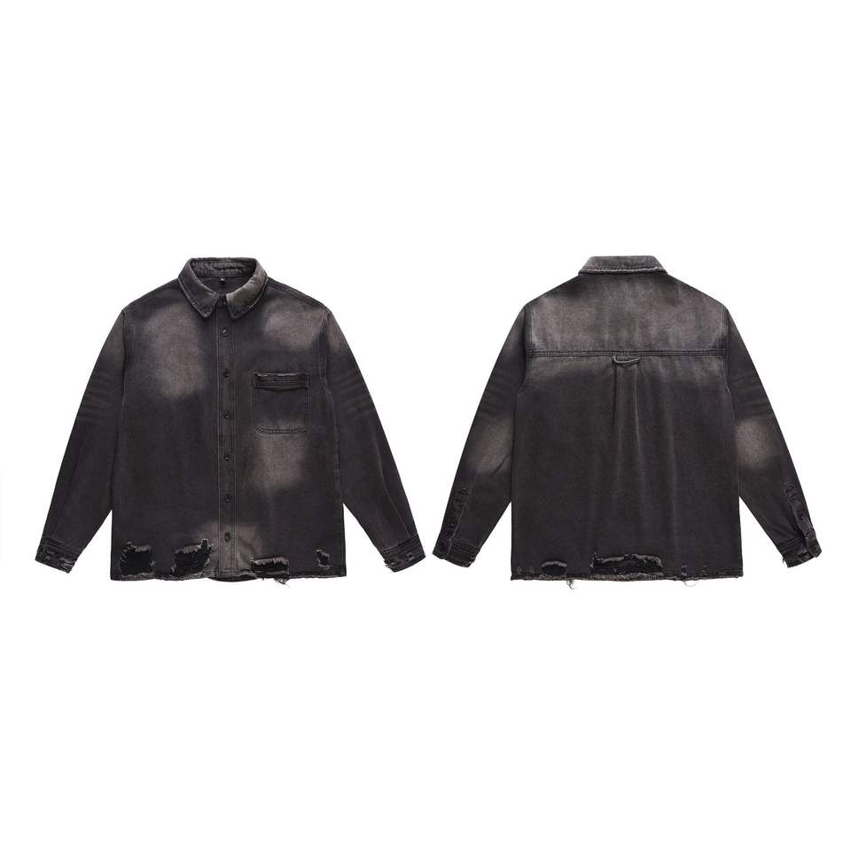 Clothing Manufacturers Washed Hole Whisker Casual Denim Fabrics Custom Denim Jacket Men Men's Jackets