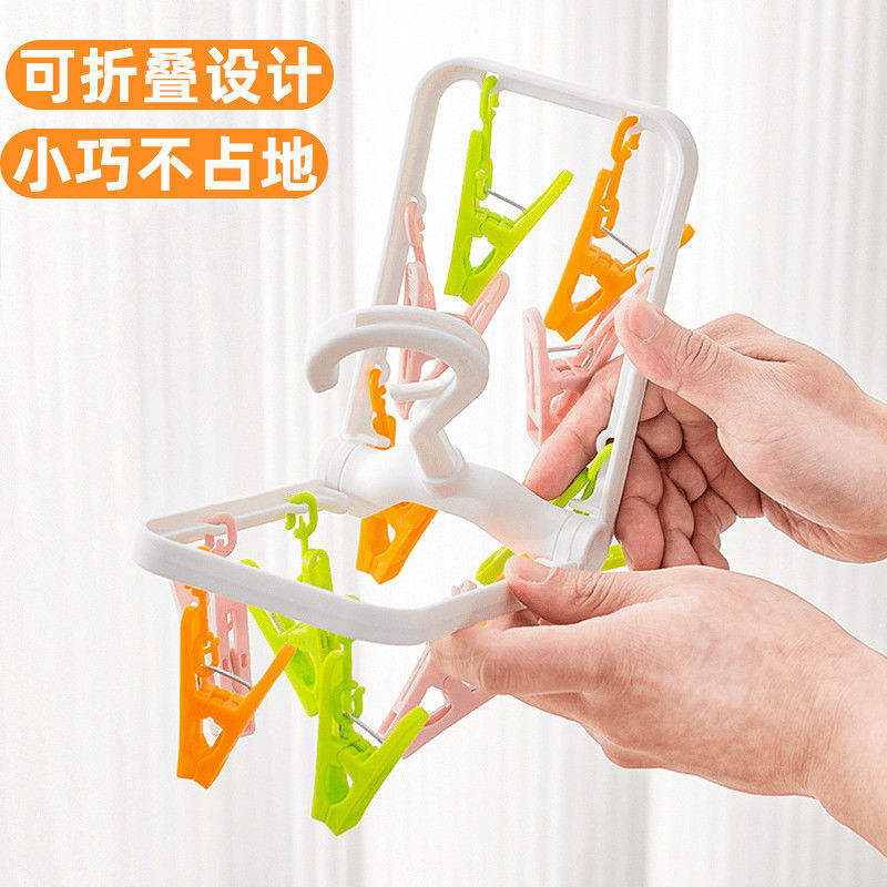 Clothing Organizer Drying Rack With 12 Colorful Clips Rectangle Foldable Hook Type For Home And Travel