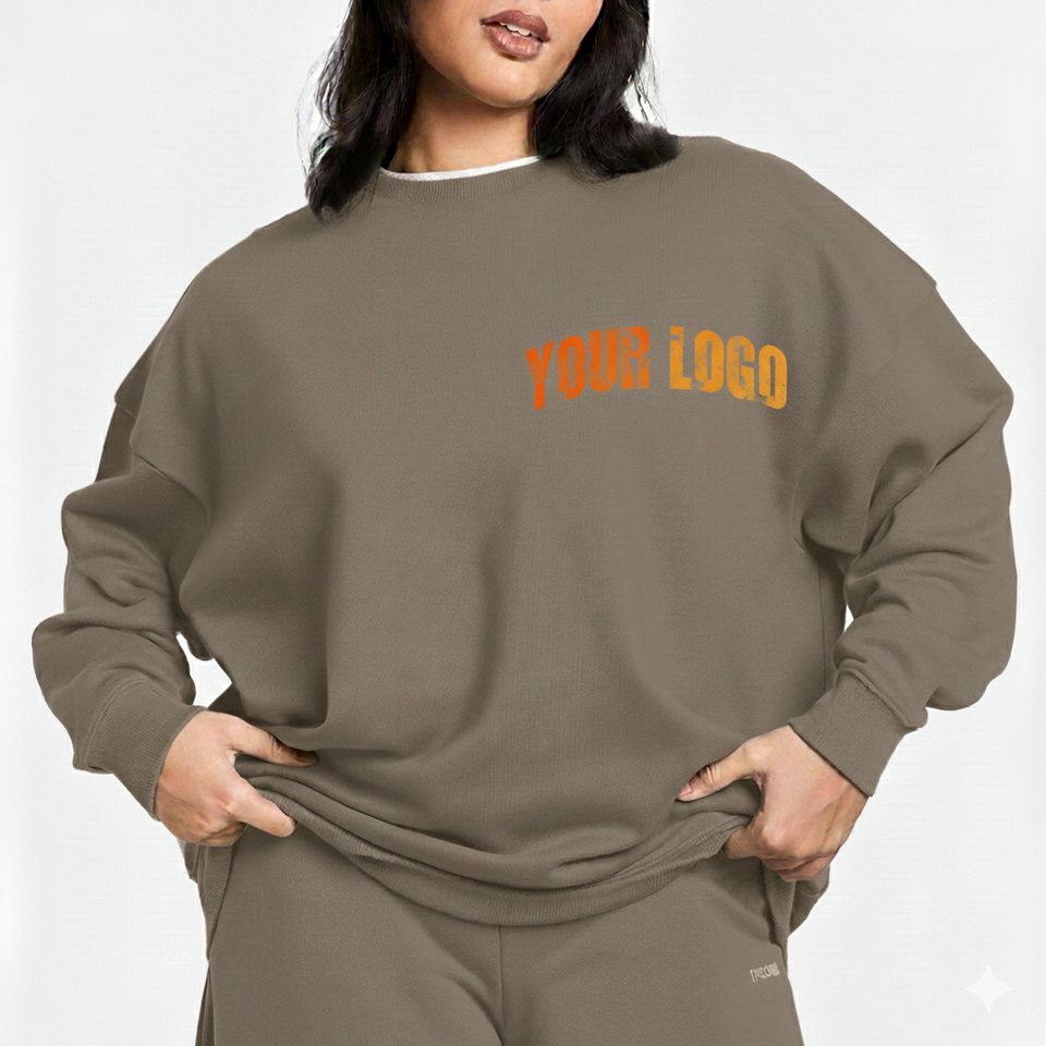 Cloud Soft Brown Long Knitted Oversized Women Sweatshirt Warm Plush Fleece Front Trendy Street Style Winter Top