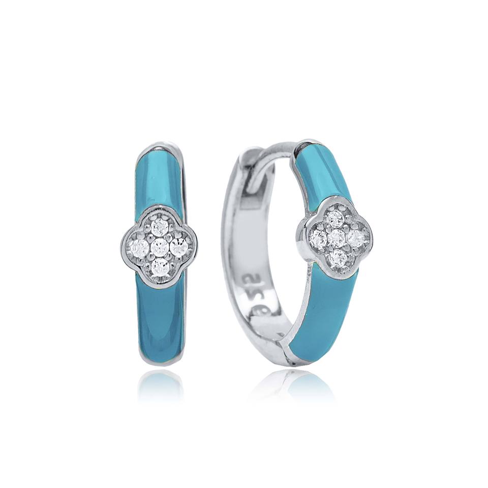 Clover Design Turquoise Enamel Color Hoop Earrings Stylish Handmade Gold Plated Turkish 925 Sterling Silver Jewelry Gift