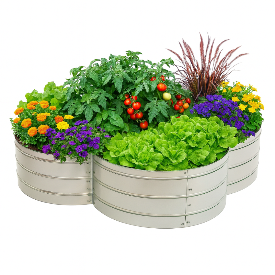 Clover-Shape Galvanized Steel Raised Garden Planter Bed Modular corrugated Planters Bed Garden Boxes for Vegetables & Decoration