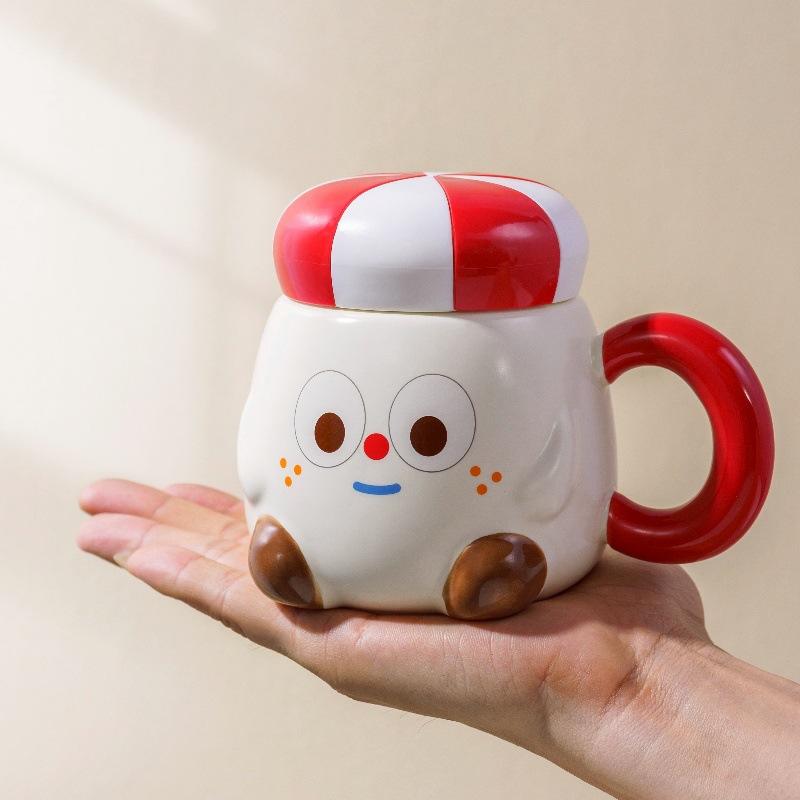 Clown Porcelain Ceramic Mug Cute Cover Funny Couple Cartoon Pattern Eco-Friendly 480ml Irregular Shape Multi-Color Breakfast Cup