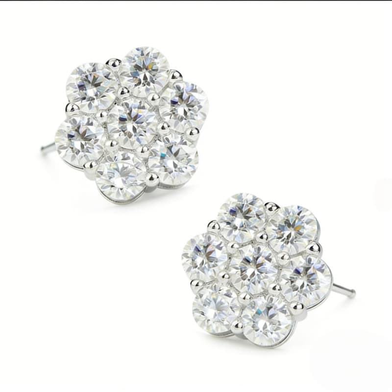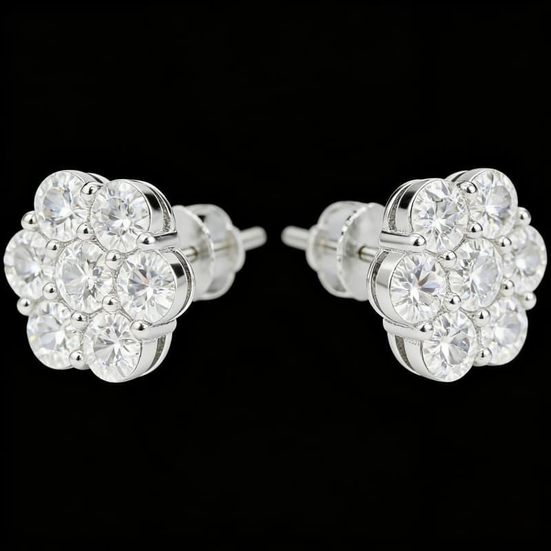 Cluster Flower S925 Moissanite Earrings Men Hiphop 925 Sterling Silver Moissanite Stud Earrings with GRA Certificate