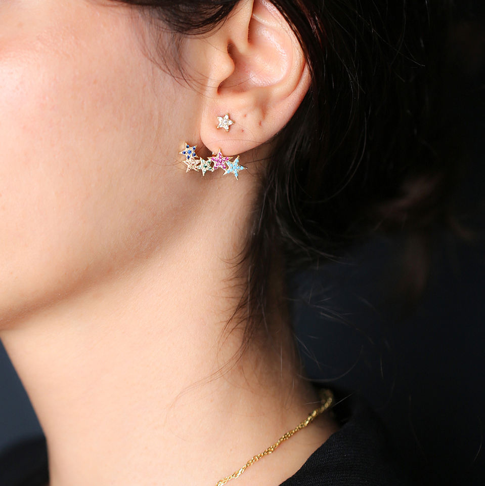 Cluster of Star Earring Colorful Star Earring Double Side Earring Turkish Wholesale Handmade 925 Sterling Silver Jewelry