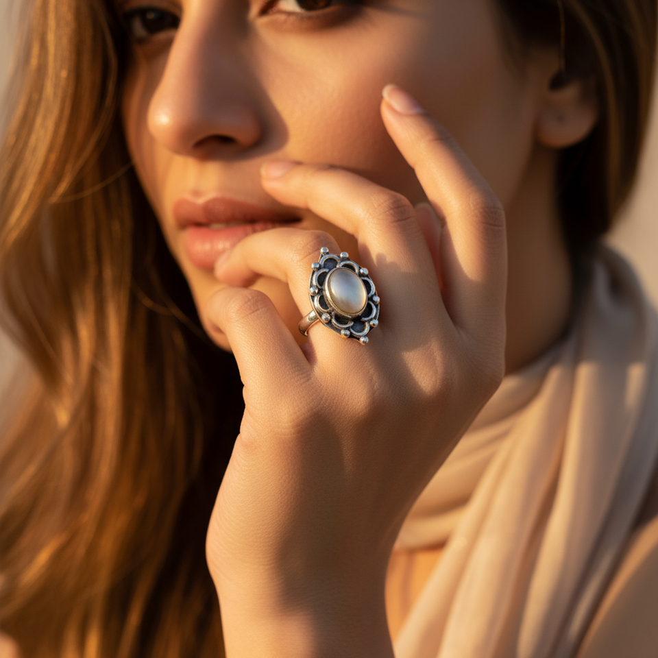 "Cluster Statement Ring with Turquoise Cut Stone in 925 Sterling Silver for Women"
