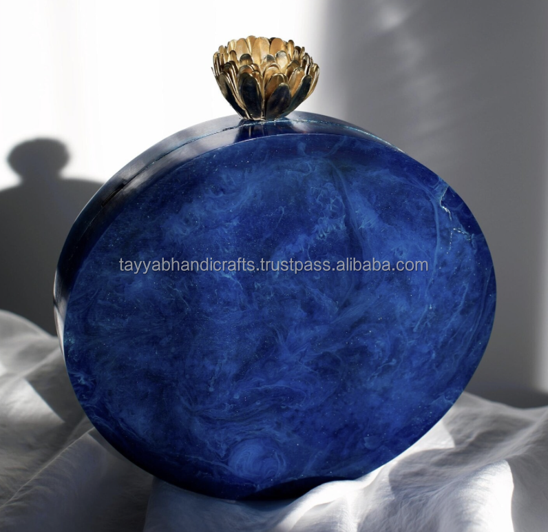 Clutch Bag Marble Color Resin Geometric Shape Acrylic Marble Color Evening Bag With Gold Strap from India