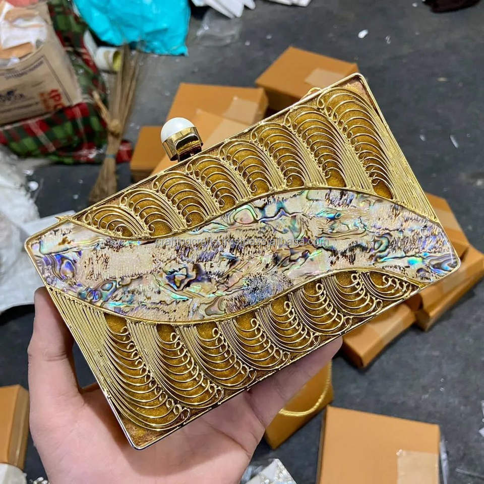 Clutch Bags for Women Luxury Handmade Luxury Clutch with Mother of Pearl & Brass Inlay From India for Sale
