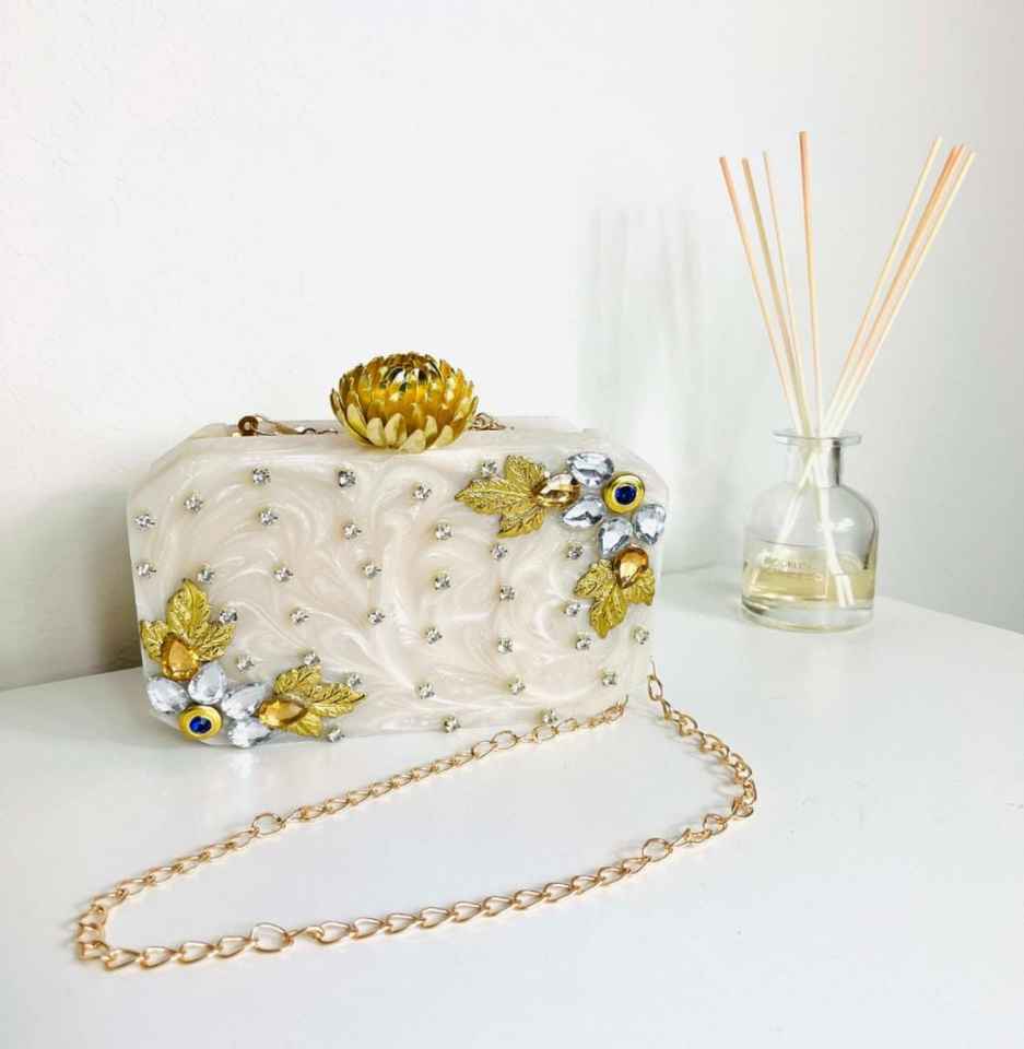 Elegant Bridal Clutch Purse Resin Crystals Mother Pearl for Bridesmaids Stylish Handbag for Wedding Events Party Fashion