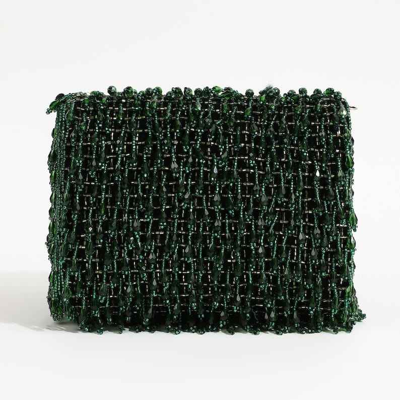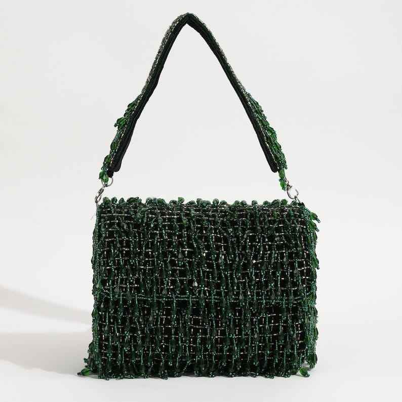 Clutch Crossbody Handbag Metallic Crystal Rhinestone Evening Party Bag with Striped Envelope Pattern