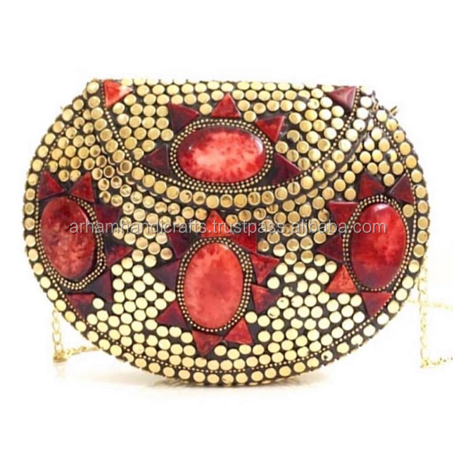 Clutch Ethnic Metal Purse Mosaic Clutch Wallet Resin Clutch Bag at Lowest Price by LUXURY CRAFTS