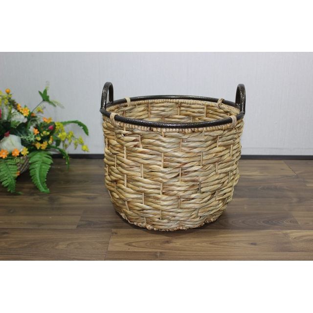 Description:Top and semicircular handle by metal. Twisted weave. Natural color