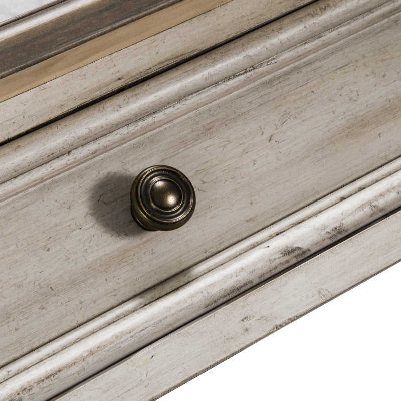 Coastal-Inspired Glass Top Coffee Table with Dual Drawers and Lower Slatted Shelf Weathered White Finish Movable Decorative