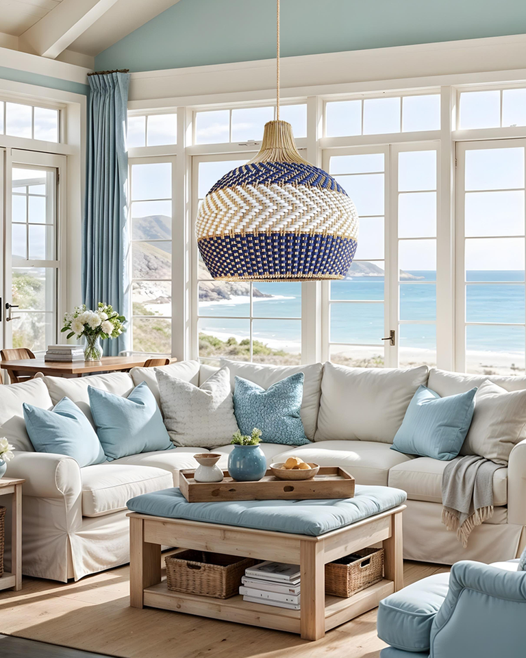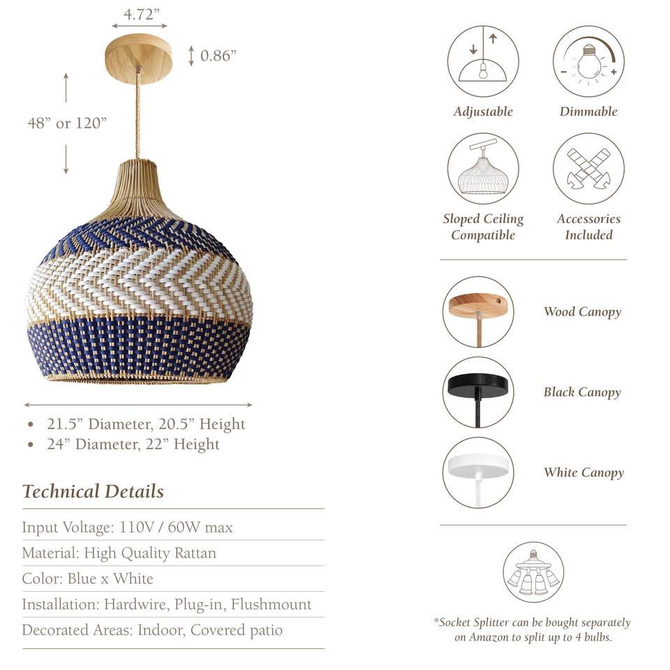 Coastal Style Blue White Dome Lamp for Dining Room Kitchen Island Adjustable Hanging Lights for Mexico House Mexico Style for