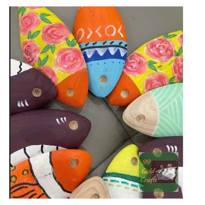 Coastal Style Vietnam Wooden Fish, Natural Wood Carved Decor for Porch Garden Entryway, Kids DIY Crafting and Wall Display
