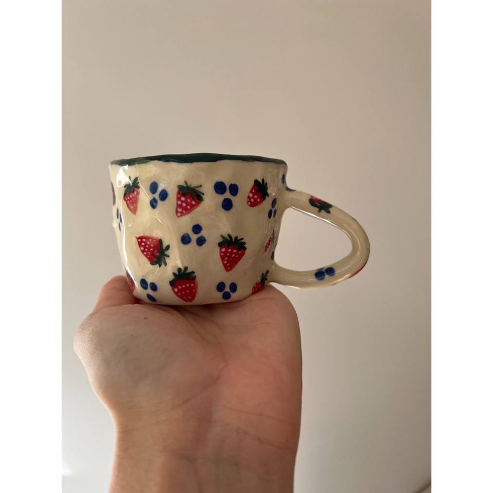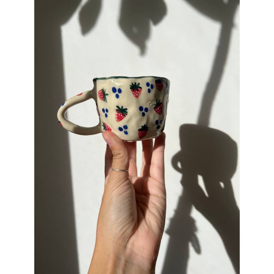 Coastal theme ceramic mug with light glaze and cherry tones made for tea drinkers beautifully designed by BRUSHSTROKE BLISS