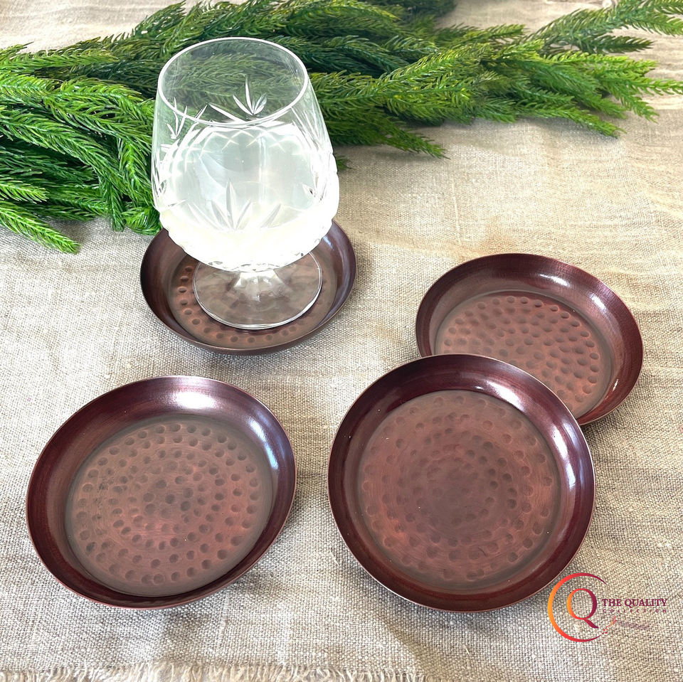 Coaster Antique Copper Set of 4 Hammered Design Coasters With Holder Factory Wholesale Available in Custom Shape and Size