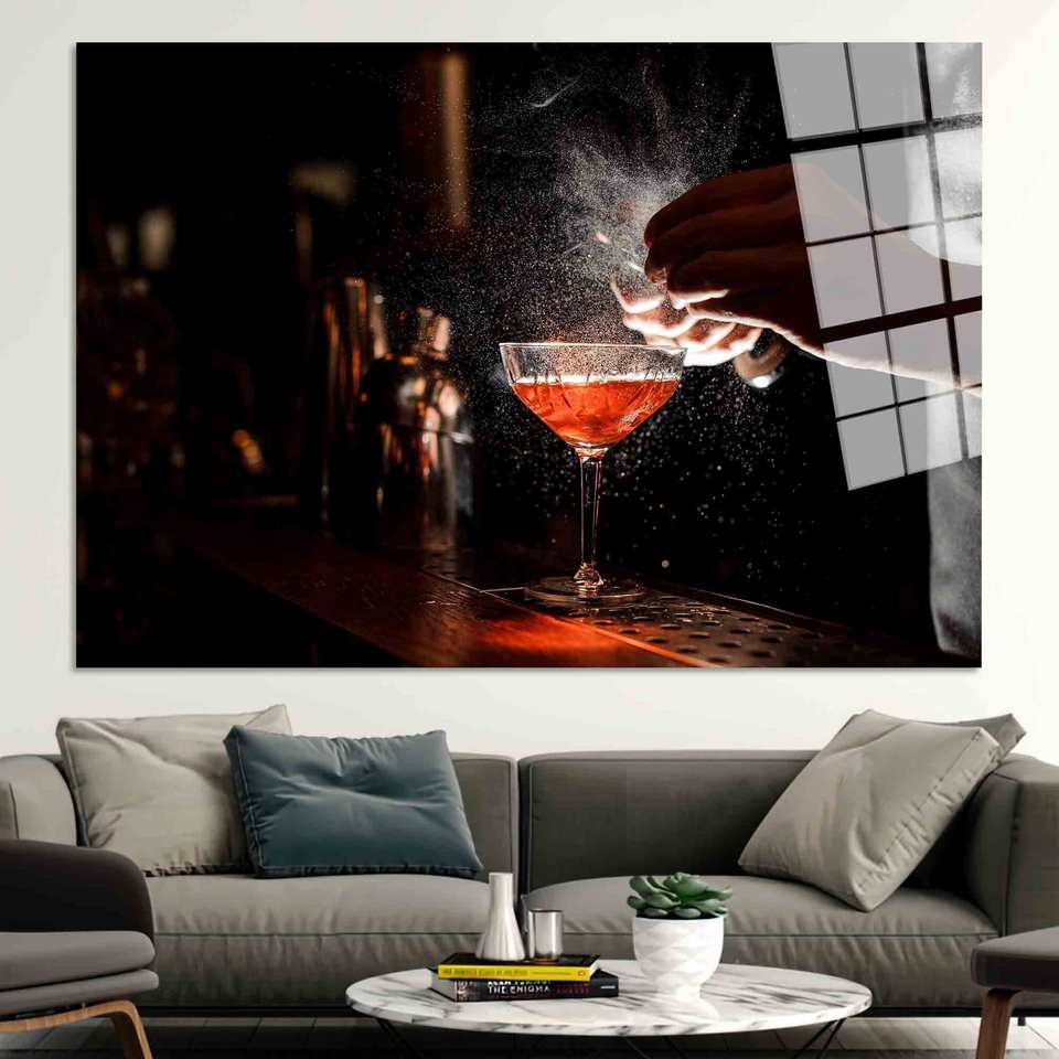 Cocktail Goblet Canvas Print: Vibrant Kitchen Bar Wall Art,TEMPERED GLASS ART