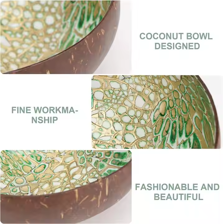 Coconut Bowl with Mother of Pearl Eco friendly coconut shells Products made from Vietnamese coconuts Durable Bowls Wholesale