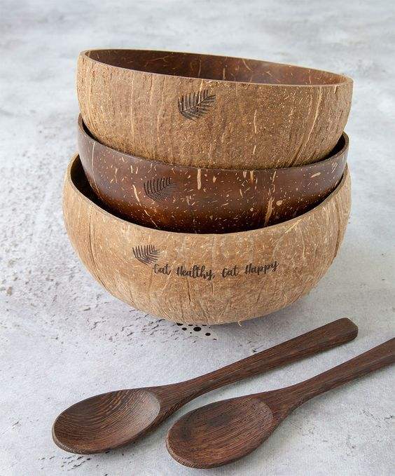 Coconut Bowls and Spoons Sets Wooden Smoothie Bowls Vegan Coconut Shell Salad Serving Coconut Bowl Sustainable From Vietnam