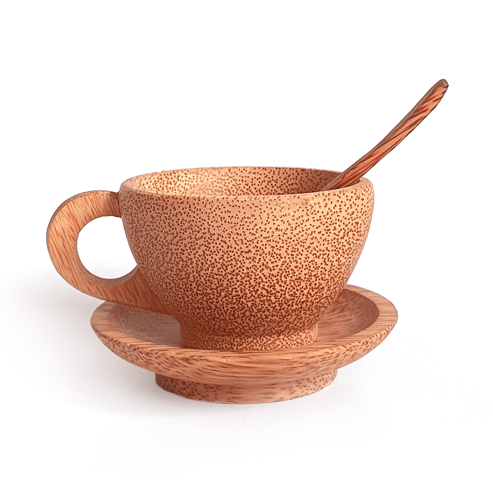 Coconut Wood Coffee Cups With Lid Reusable Contemporary Coconut Wood Tea Cup and Saucer Set Custom Logo Accepted