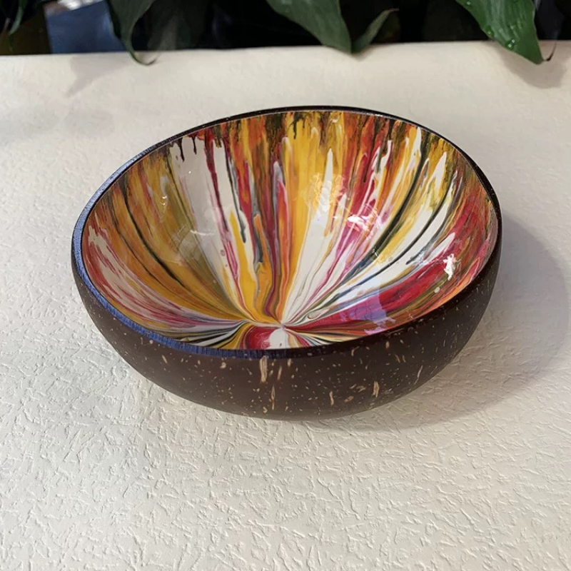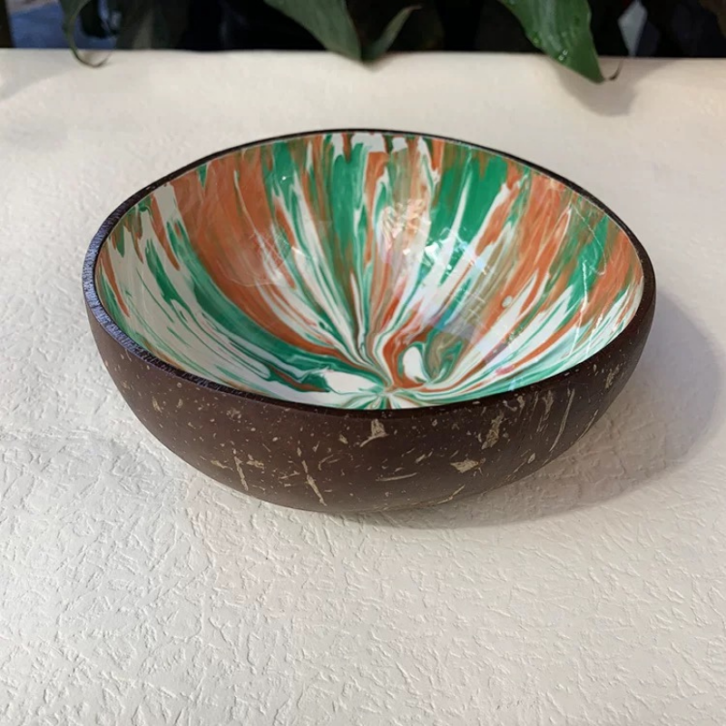 Coconut bowl with engraved patterns perfect for candle holders or tropical event table centerpieces