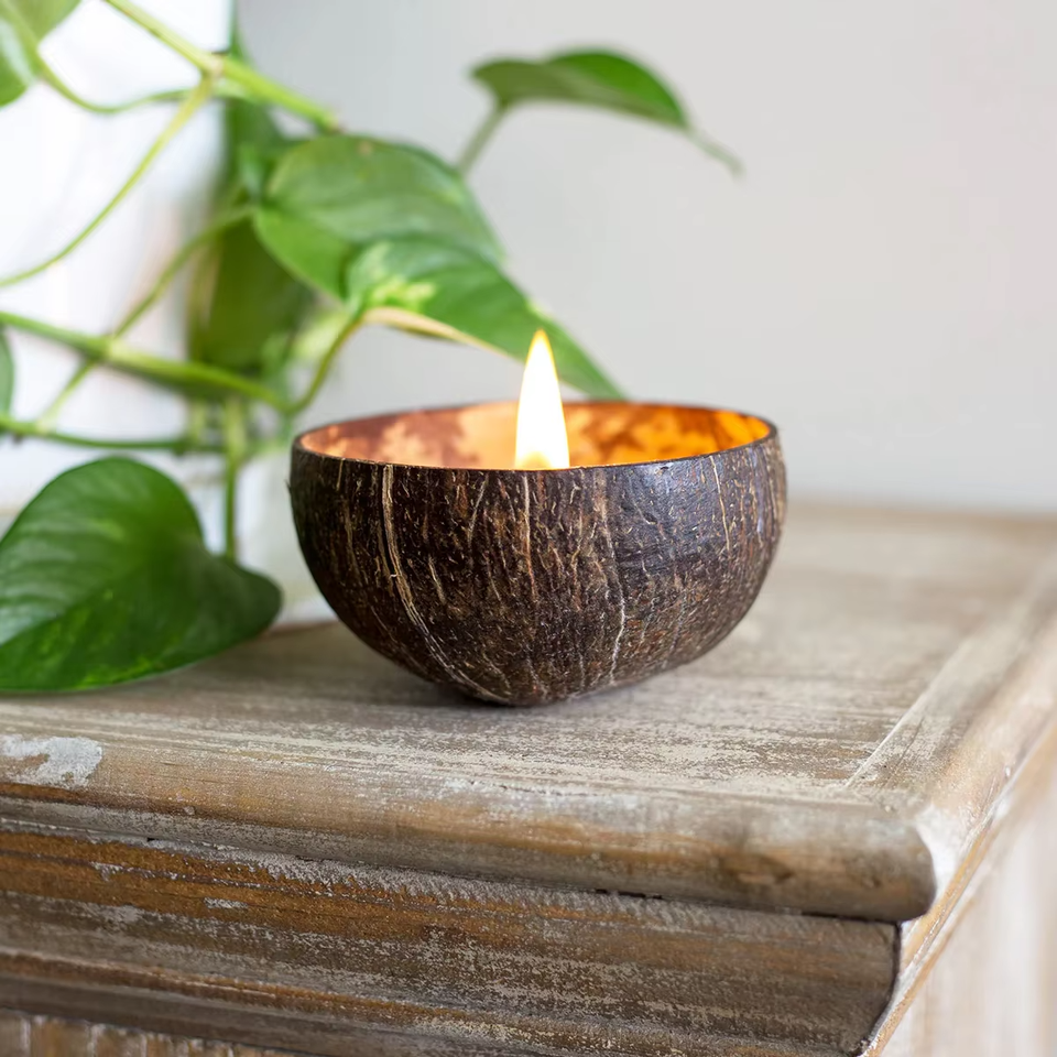 Coconut shell candle holder:D2,8 x H2,8 inch