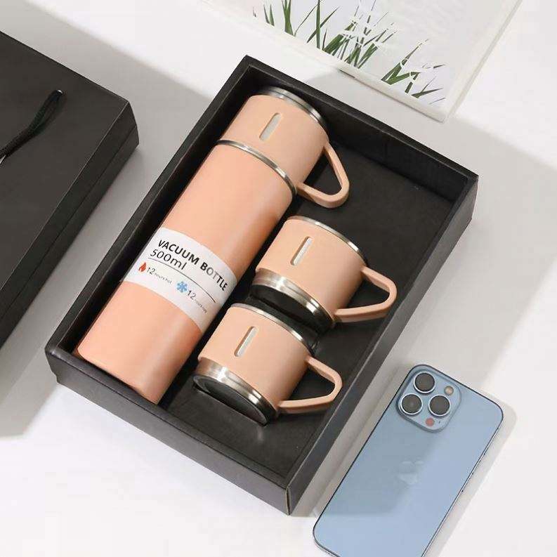Coffee Stainless Steel Vacuum-Insulated Water Bottle 500ml/16.9oz Insulated Bottle with Cup for Hot Cold Drink Travel Mug