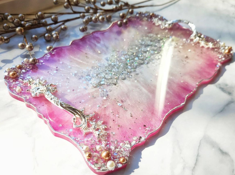 Coffee Tea Rectangular Serving Tray with Matching Coaster Resin Serving Tray Dinner Set Dishes Plates Service Tray