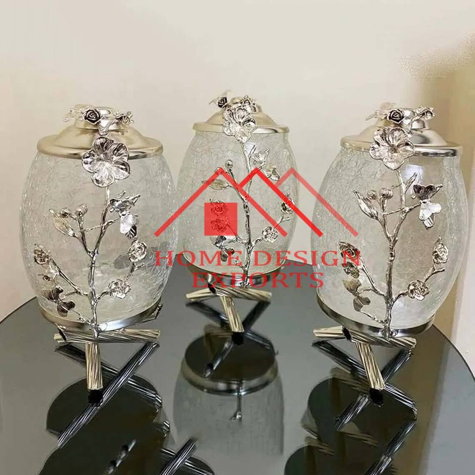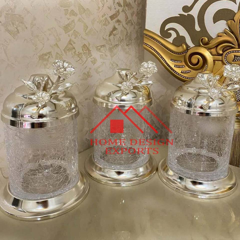 Coffee Tea Sugar Crackle Glass Container for Kitchen 2023 New Design Decorative Clear Glass Foods Canister Set of 3 for Home