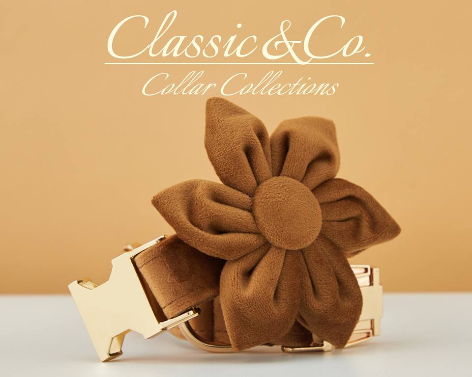 Coffee Veet Personalize Dog Collar Leash Set With Flower & Bow Tie For Male Female Pet,Gold Engraved Name Tag,Wedding Puppy Gift