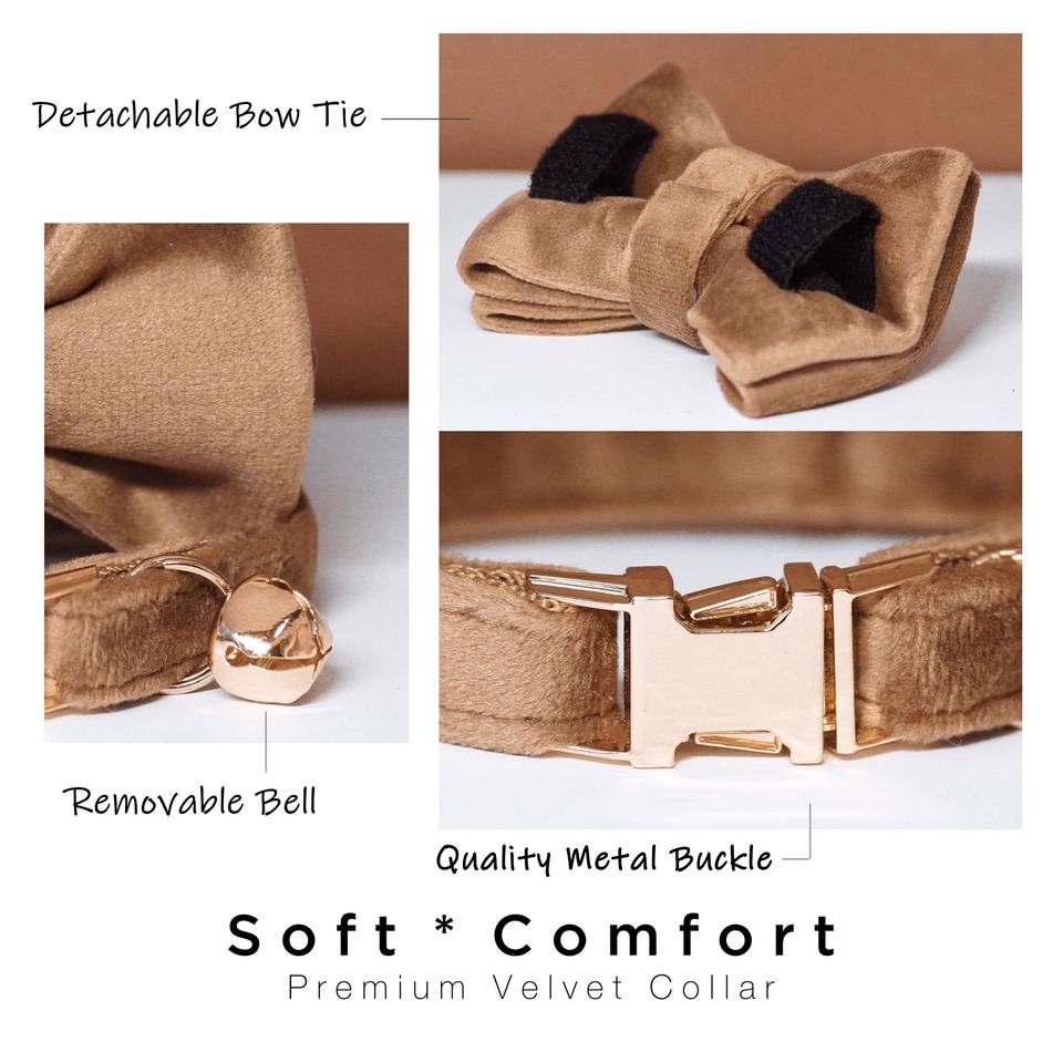 Coffee Veet Personalized Cat & Small Dog Collar Bow Tie Leash Set,Custom Engraved Kitten Puppy Name Tag,Free Gold Bell, Male Pet