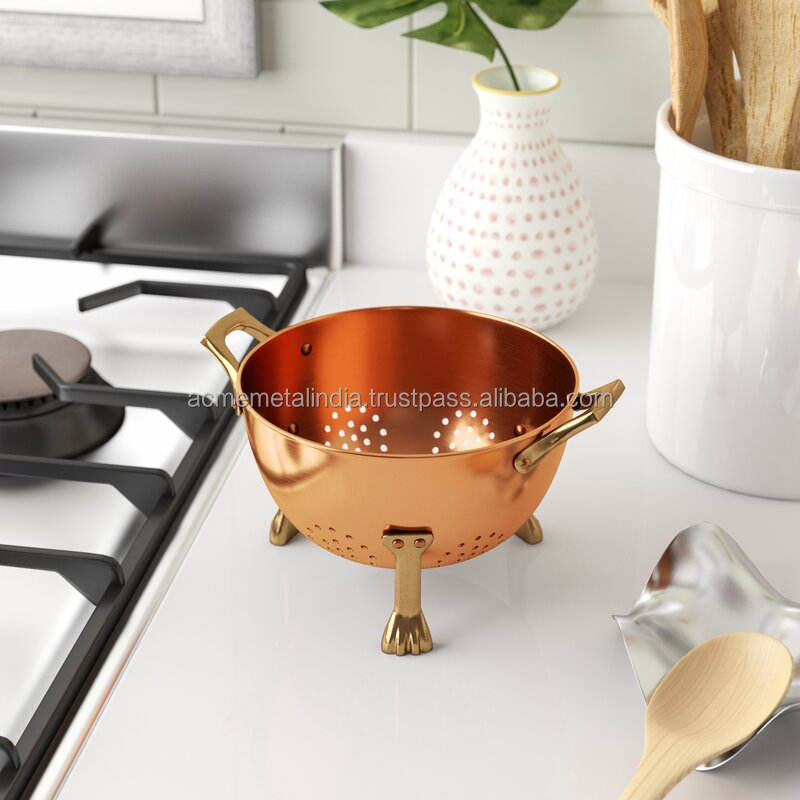 Colander for Fruits and Vegetables Brass Handles Big and Small Size Available Custom Colours High Quality Stainless Steel