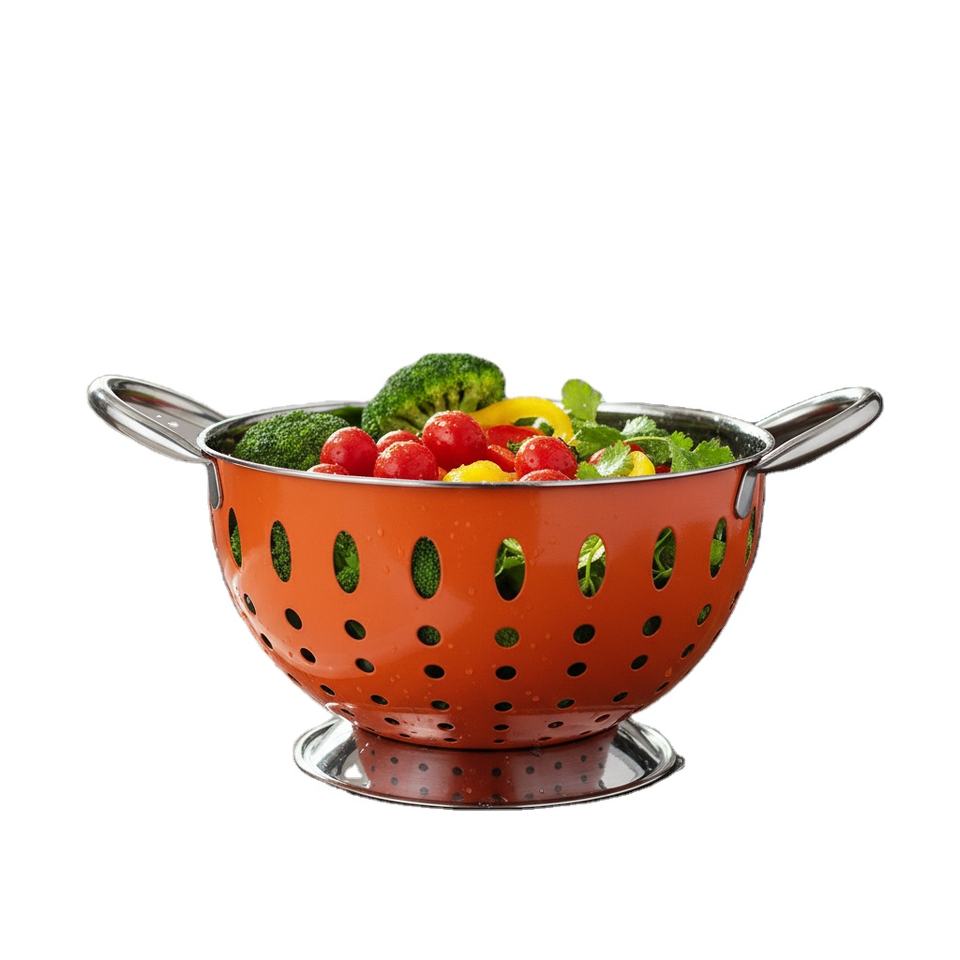 Colander Orange Color Deep Colander Hole Food Strainer Basket Family Stainless Steel Vegetable Fruit Noodles