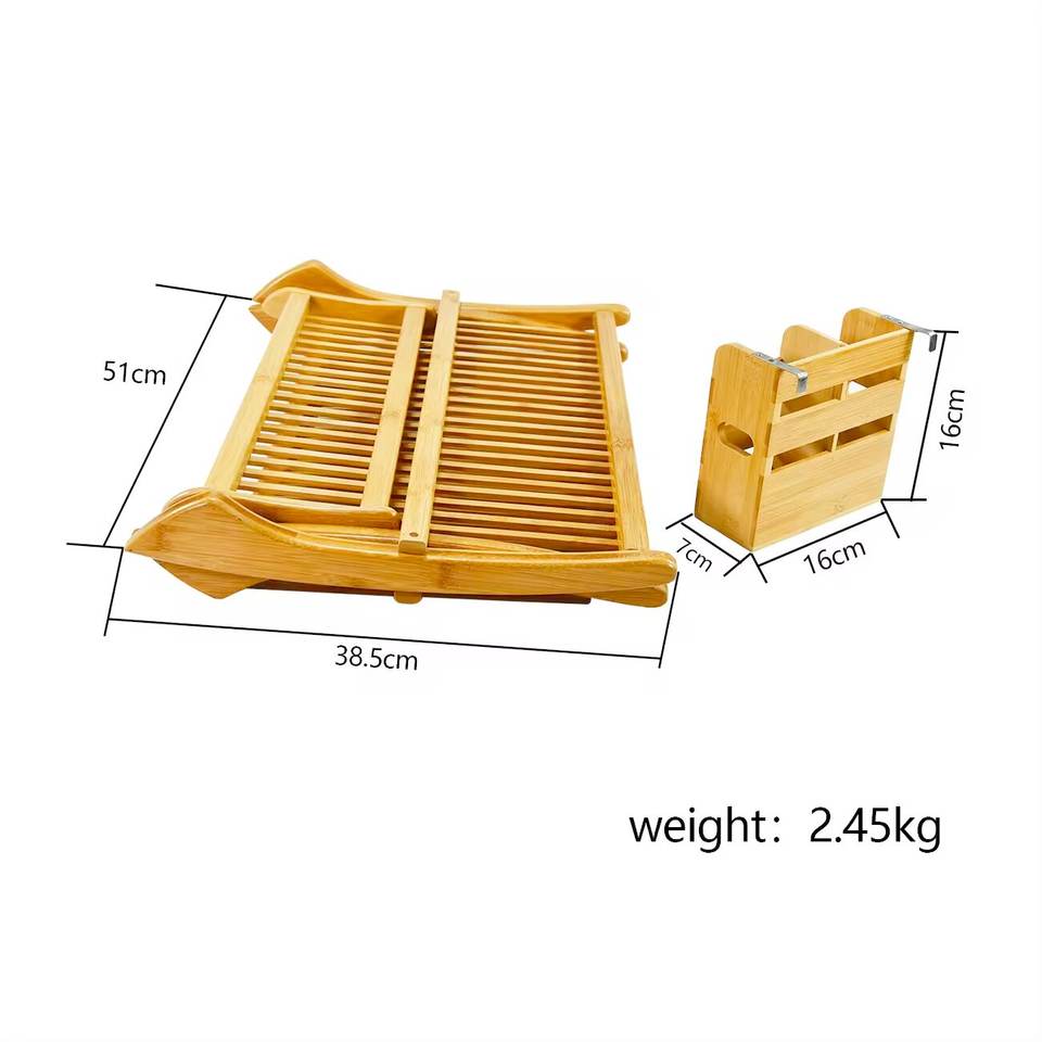 Collapsible Big Bamboo Dish Drying Rack-2 Tier, Wooden Drying Rack for Kitchen Counter