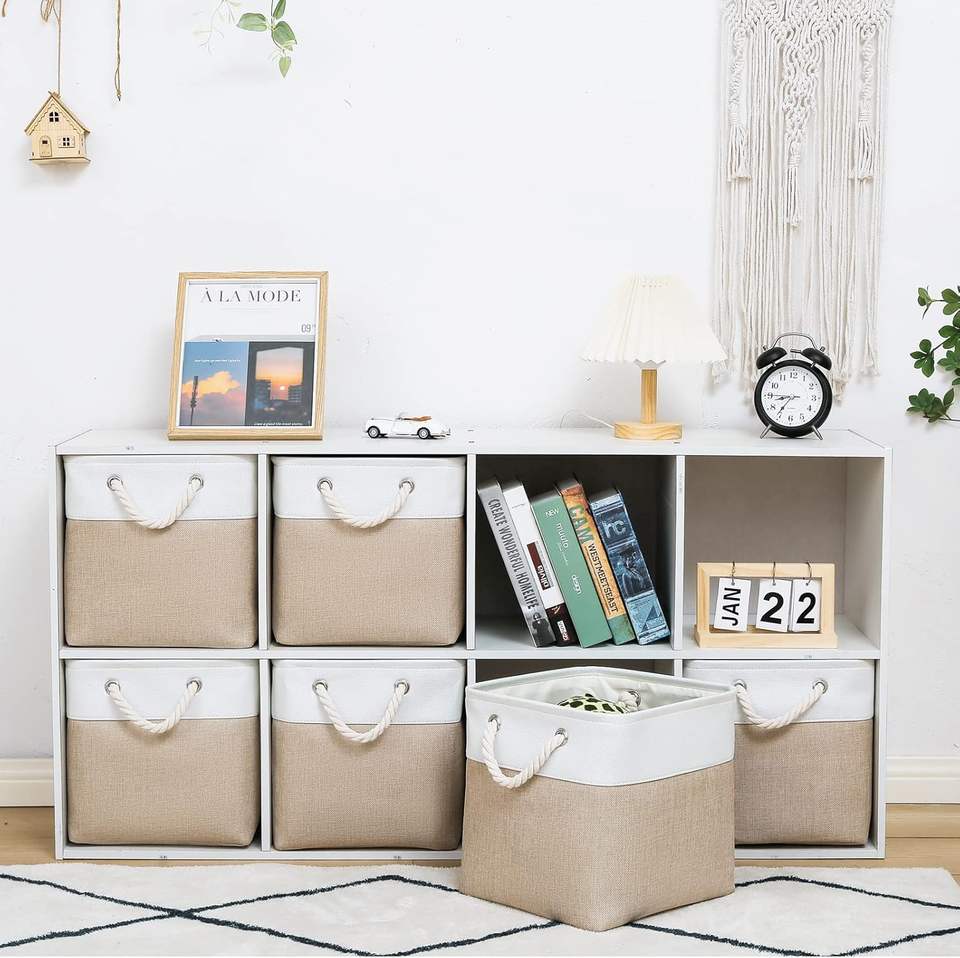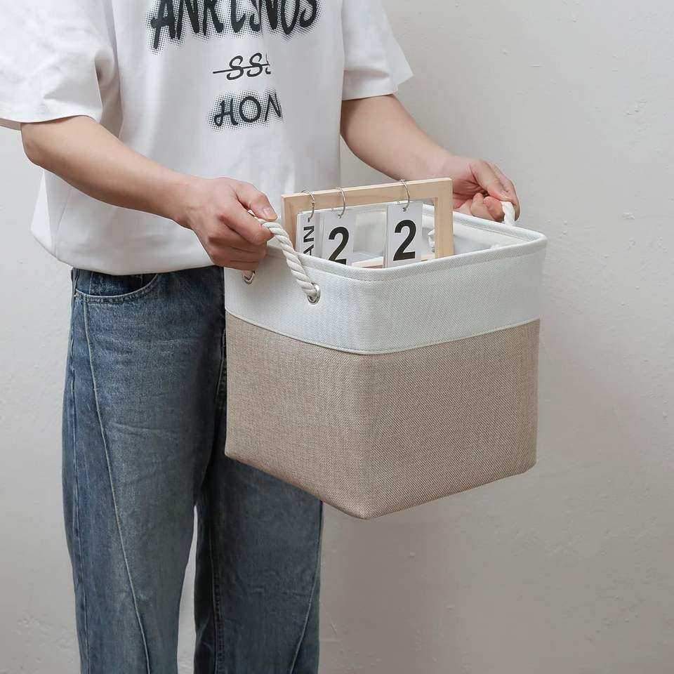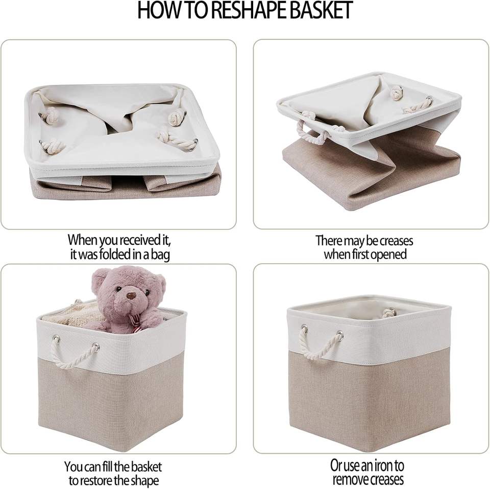 Collapsible Fabric Storage Bin with Ropes Foldable Storage Cubes 11 x 11 Inch Cube Storage Bins for Closet