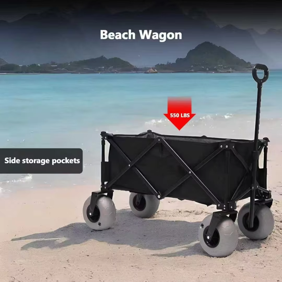 Collapsible Folding Wagon Cart Heavy Duty Garden Cart with All Terrain Wheels Portable Large Capacity Utility Wagon Cart